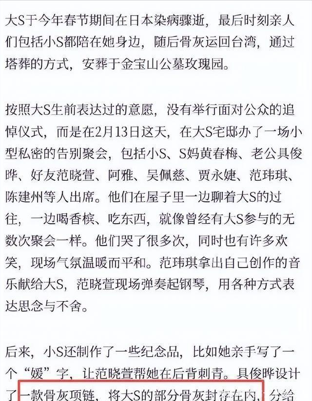 大S于2025年2月27日因流感并发肺炎去世,此事件引发公众关注,当时徐熙媛与前夫汪小菲离婚后已再婚具俊晔,而与汪小菲在法院调解离婚时,笔录规定汪小菲从2021年12月1日起至2038年3月1日止,每3个月支付大S300万新台币抚养费。汪小菲后来有3期只付150万新台币,欠下750万新台币,大S申请强制执行获准,汪小菲申请停止强制执行并提债务异议。大S去世后,小S经历八个月低谷期,推掉所有工作邀约,陷入失眠和情绪失控状态,对主持事业产生畏惧感,认为大S离开带走了她身上的快乐因子。